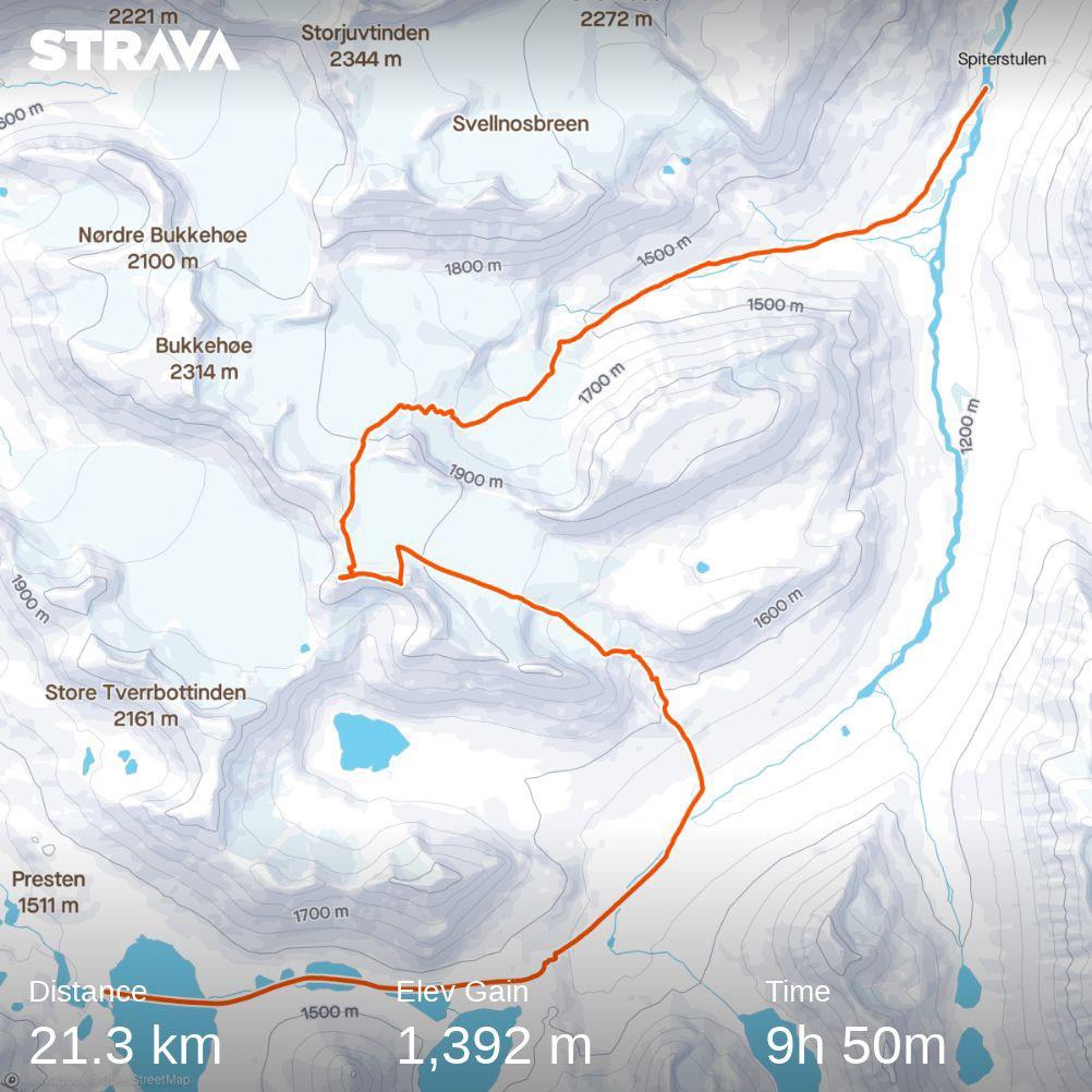 Dagen startet i god driv fra Spiterstulen, for å komme oss opp i sola på Tverråbreen. Fra midt på Tverråbreen fikk vi skikkelig påskevær med full sol og skyfri himmel. Etter en fin lunsj i sola, fortsatte vi turen opp på Midtre Bukkeholstindan. Her var det fantastisk utsikt over bl.a. Kyrkja, Store Skagastølstind og Galdhøpiggen. Videre var det ned Bukkeholsbreen i deilig puddersnø. I bunn av Bukkeholsbreen fulgte vi kvistet løype hele veien til Leirvassbu, med flott utsikt til Kyrkja hele veien. Etter det som ble turens lengste dag, ventet en veldig god middag på Leirvassbu.